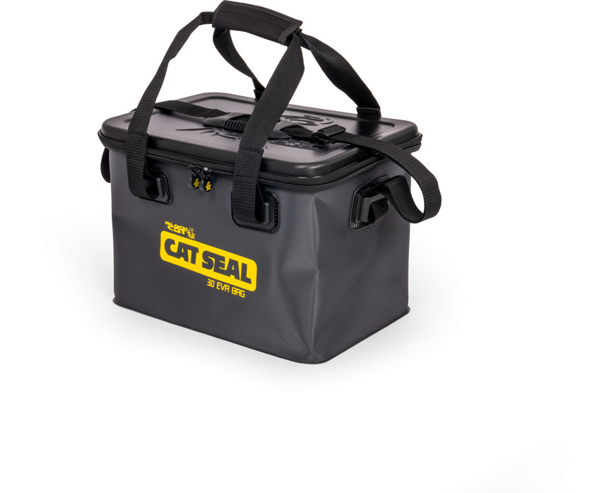 A Black Cat Cat Seal EVA 30 egy strapabíró, teljesen vízálló szerelékes táska, amelyet kifejezetten horgászok számára terveztek a felszerelések biztonságos és rendezett tárolására. A 30 literes kapacitás elegendő helyet biztosít a legfontosabb eszközök, kiegészítők és csalik számára, miközben kompakt mérete lehetővé teszi a kényelmes szállítást akár parton, akár csónakban.
