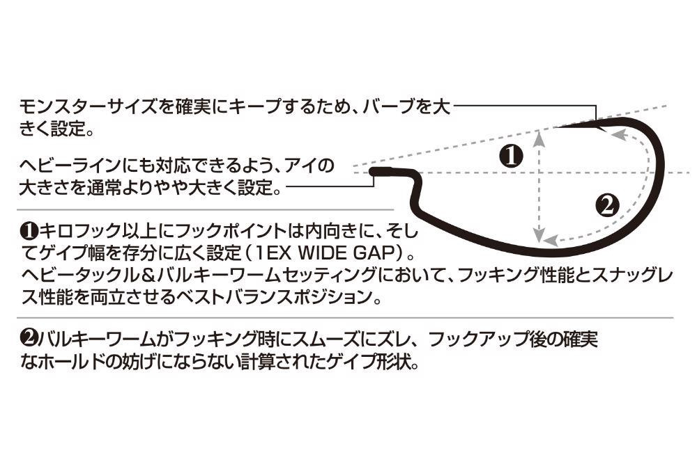A robusztus 4/0-es méret kifejezetten a nagyobb testű ragadozók, köztük a Rock Fish horgászata során nyújt magabiztos tartást és akasztást.