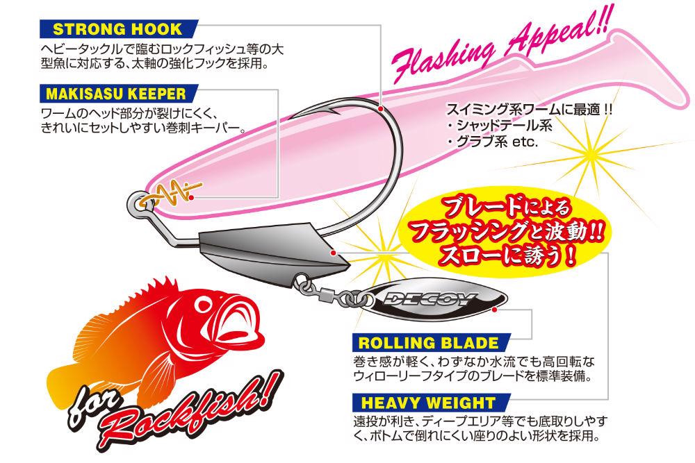 A csomag tartalma: Decoy Worm 231S Makisagu Blade Heavy #2/0 14gr Súlyozott Offset Horog 1db