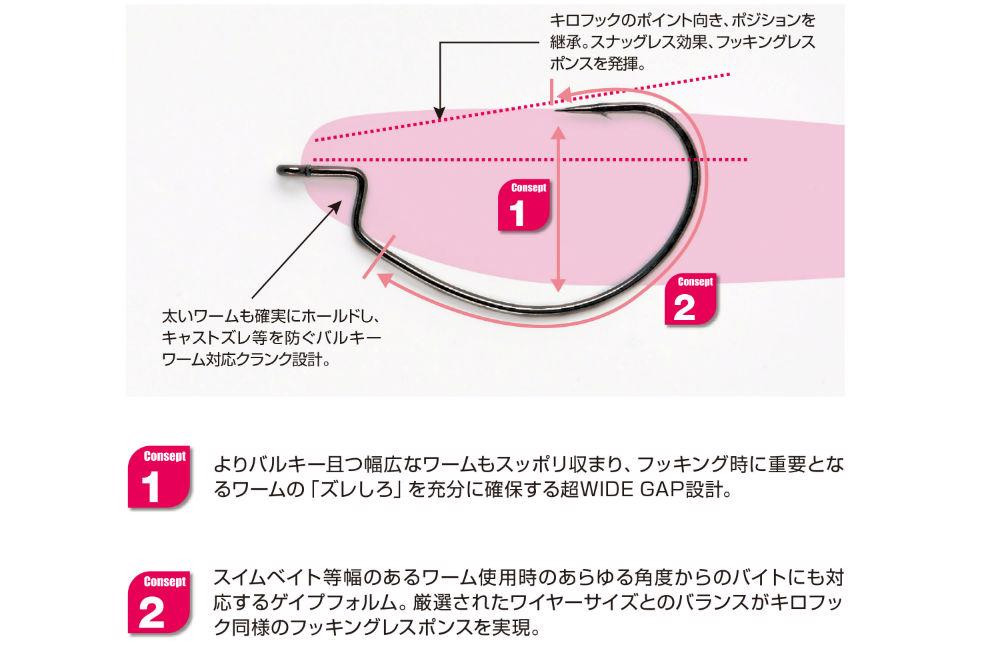 A #1-es méret és a jellegzetes Wide Gap (széles öböl) kialakítás ideális választássá teszi ezt a horgot nagyobb méretű lágy csalikhoz, extra teret biztosítva a biztos akadáshoz, még a legóvatosabb kapások esetén is.
