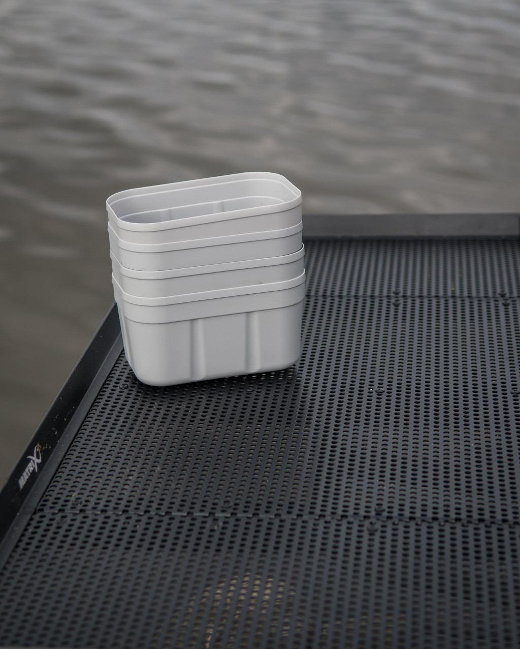 A világos szürke színű külső segít elkerülni a túlmelegedést, így a benne tárolt csali hosszabb ideig megőrzi minőségét, különösen meleg időjárási körülmények között. A kompakt szögletes forma nemcsak praktikus tárolást tesz lehetővé, hanem könnyen illeszkedik a horgásztáskába, versenyládába vagy oldaltálcába is. Az egymásba helyezhető kialakítás révén több doboz is egyszerűen tárolható egymás tetején, így helytakarékos megoldást kínál a különböző csalik rendszerezésére.