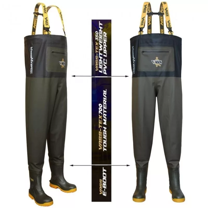 A praktikumra is nagy hangsúlyt fektettek: egy külső cipzáras mellzseb és egy belső zseb is rendelkezésre áll, hogy a legfontosabb apróságok mindig kéznél legyenek, biztonságban. A belső mellzseb húzózsinórral és rögzítőkkel állítható, így tökéletesen illeszkedik a testhez. A lábaknál a strapabíró és kiváló tapadású 'Vass E Boot' csizma biztosítja a stabilitást és a biztonságos járást csúszós, egyenetlen terepen is, legyen szó sárról vagy sziklás aljzatról.